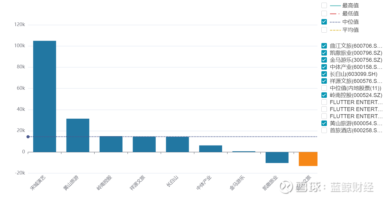 从同业比较看,Wind数据显示,酒店、餐饮与休闲类内地股票共11支,抛去锦江、首旅两家酒店集团,其余9支以2024年报显示营收、净利润看,曲江文旅2024年12.3亿元的营业收入处于行业中位值。但从2024年归母净利润的角度看,曲江文旅全年亏损1.31亿元,在9家上市公司中亏损最多。