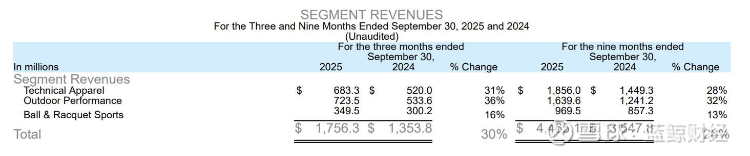 事实上即便没有烟花秀事件,一度创造增长神话的始祖鸟已然面临增长动能减弱的挑战。2025年第二季度,始祖鸟所在的技术服装板块营收增长23%至5.09亿美元,增速较一季度下降5个百分点,调整后营业利润率同比下降10个基点至13.9%。第三季度,该板块全渠道综合竞争力增强,营收增长率提升至31%,但调整后营业利润率同比下降100个基点至19.0%。