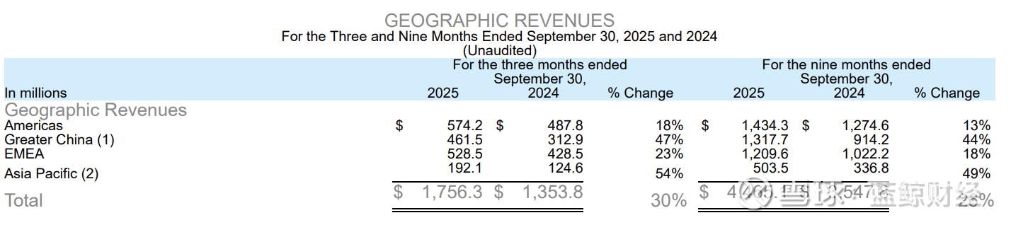 从不同市场表现看,所有四个地区均实现了两位数的收入增长。其中大中华区增长47%,强劲增长势头延续至2025年第四季度。
