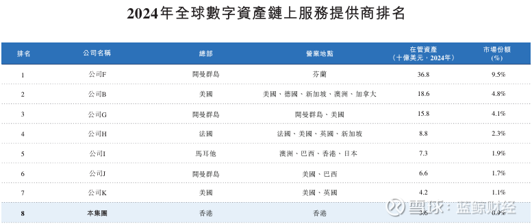 在链上服务方面的市场份额同样仅列行业第8,仅不到1%,管理资产仅为头部公司的十分之一。