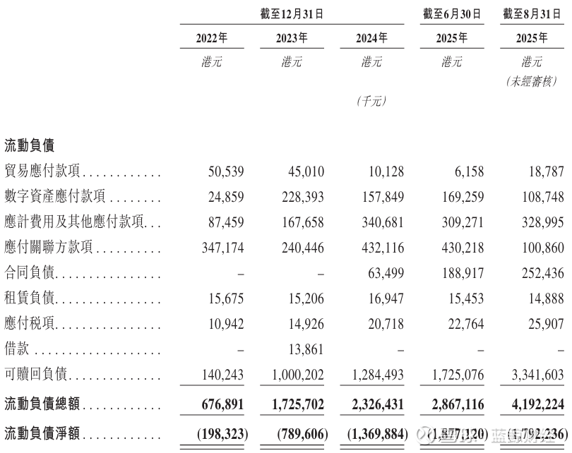 另一个值得注意的数据是其流动负债净额这一数据,从2022年的-1.98亿港元迅速扩大到近年的超-18亿港元,偿债压力凸显。
