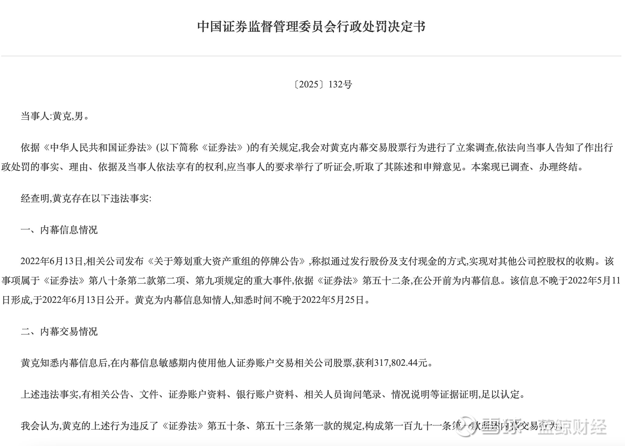另一当事人黄克的内幕交易问题,同样涉及2022年6月13日相关公司发布的《关于筹划重大资产重组的停牌公告》。