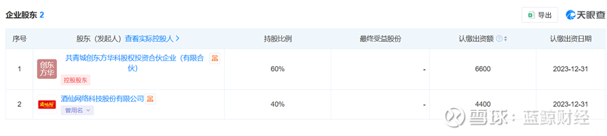 天眼查显示,华科基金于2023年入股酒快到,持有60%股权,认缴出资额6600万元。酒快到原控股股东酒仙网络科技股份有限公司(以下简称:酒仙)持股比例下降至40%。