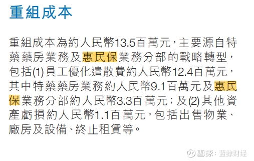 2025年半年报数据显示,重组成本为约1350万元,主要源自特药药房业务及惠民保业务分部的战略转型,包括员工优化遣散费约1240万元,其中特药药房业务约910万元,及惠民保业务分部约330万元,及其他资产损约110万元,包括出售物业厂房及设备、终止租赁等。人员变动情况也可从以上数据侧面窥见。