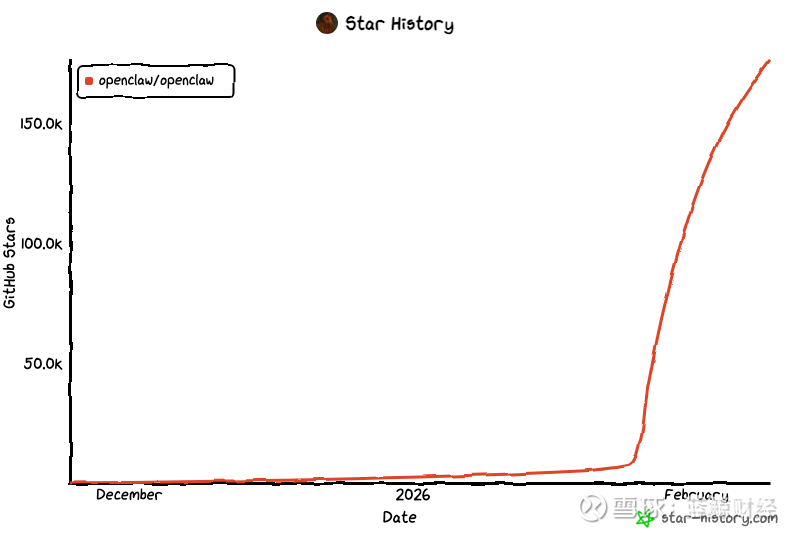 OpenClaw的GitHub星标增长曲线