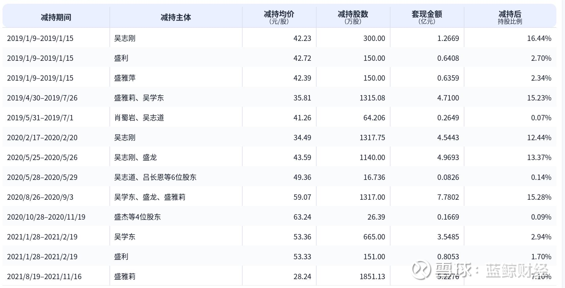 其中,吴志刚、吴学东、盛雅莉等为主要减持主体,减持方式以大宗交易和集中竞价为主,减持时间主要集中于2019年至2021年。