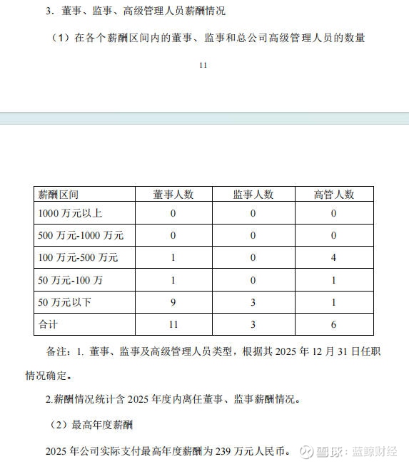 据国富人寿2025年4季度偿付能力报告,该公司董监高层面,5人薪资在100万元-500万元区间,2人薪资在50万元-100万区间,13人薪酬在50万元以下。2025年公司实际支付最高年度薪酬为239万元。