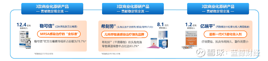 经典原研产品稳可信®作为MRSA感染治疗的“金标准”,2025年销售收入12.4亿元,在万古霉素市场所占份额为78.7%;因其为特殊使用级抗生素,未纳入第十一批国家药品集中采购名录,未来市场空间及竞争优势依旧可观。儿科呼吸道感染治疗领先品牌希刻劳®全年销售收入8.1亿元,其干混悬剂在头孢克洛零售渠道销售中占比83.2%,在头孢克洛类剂袋规格中亦有约75.0%的市场份额。亿瑞平®作为最新一代ICS雾化吸入剂,疗效更佳、抗炎作用持久、副作用更小,与希刻劳在儿童市场具有良好的协同效应。