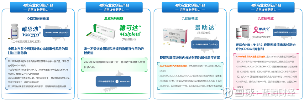 在创新药方面,唯思沛®是中国上市首个可以降低心血管事件风险的降甘油三酯药物,获得全球80余部及中国20余部指南/共识积极推荐。中国每年约有160万台PCI手术,有着巨大的临床需求,2025年唯思沛覆盖1,500名心内科PCI手术医生,惠及约2万名PCI术后患者,在院外渠道,唯思沛®是京东双十一原研血脂用药第4名。