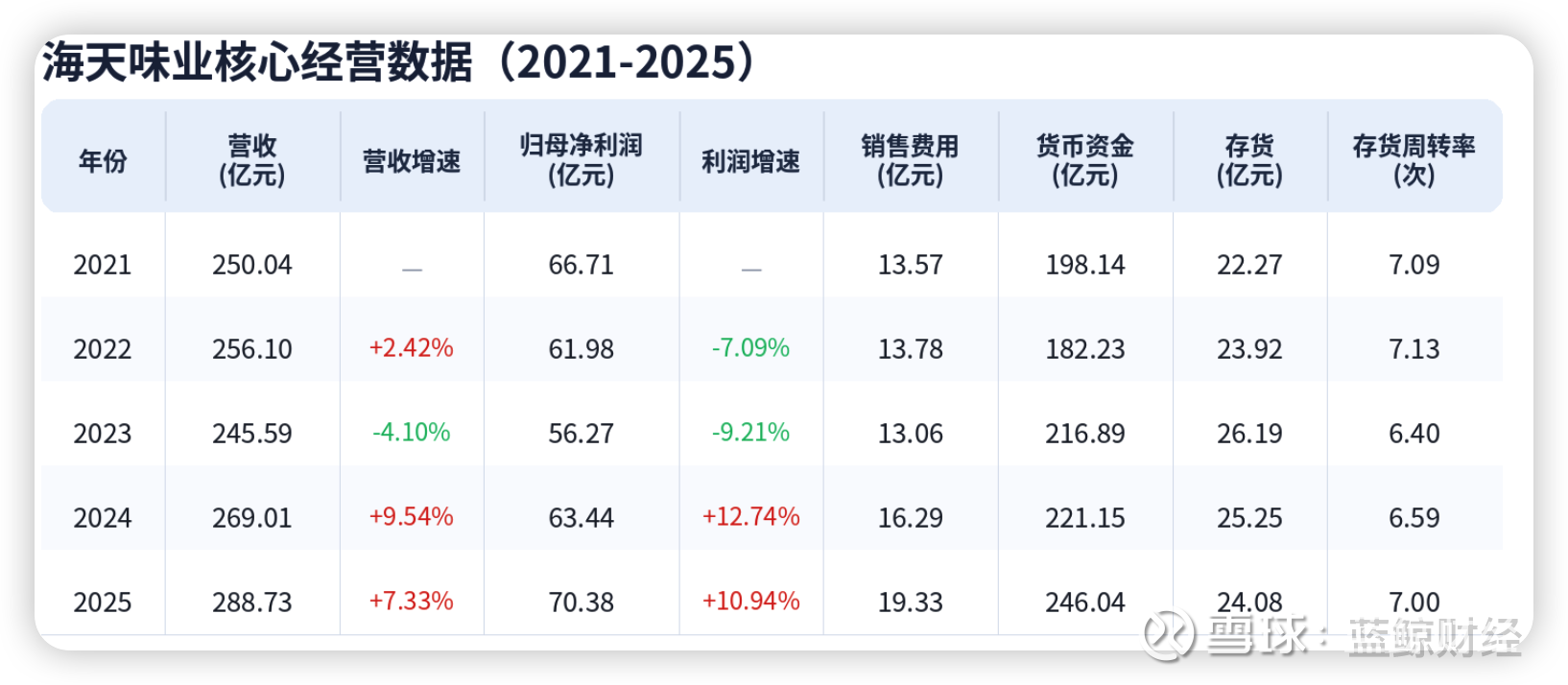 从近五年数据看,海天味业的增长呈现放缓趋势。2021年公司营收增速为9.71%,到2025年降至7.32%,虽然仍保持增长,但与前些年的高增长阶段相比,边际放缓已较为明显。