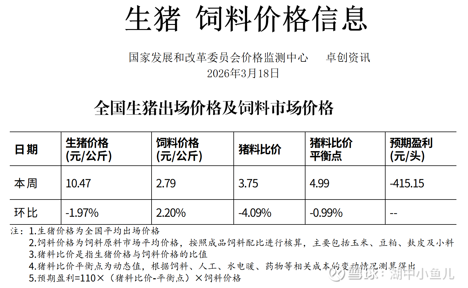 最经典、最官方的盈亏指标玉米是猪饲料里占比最大的原料,玉米价≈饲料成本的锚。猪粮比直接反映:卖一头猪的收入,能不能覆盖饲料成本。