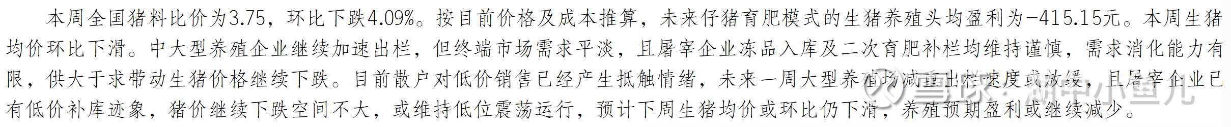 猪粮比持续低于 5.0 → 深度亏损 → 能繁母猪加速淘汰 → 猪价未来上涨