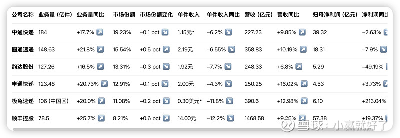 $顺丰控股(SZ002352)$ $中通快递-W(02057)$ $韵达股份(SZ002120)$