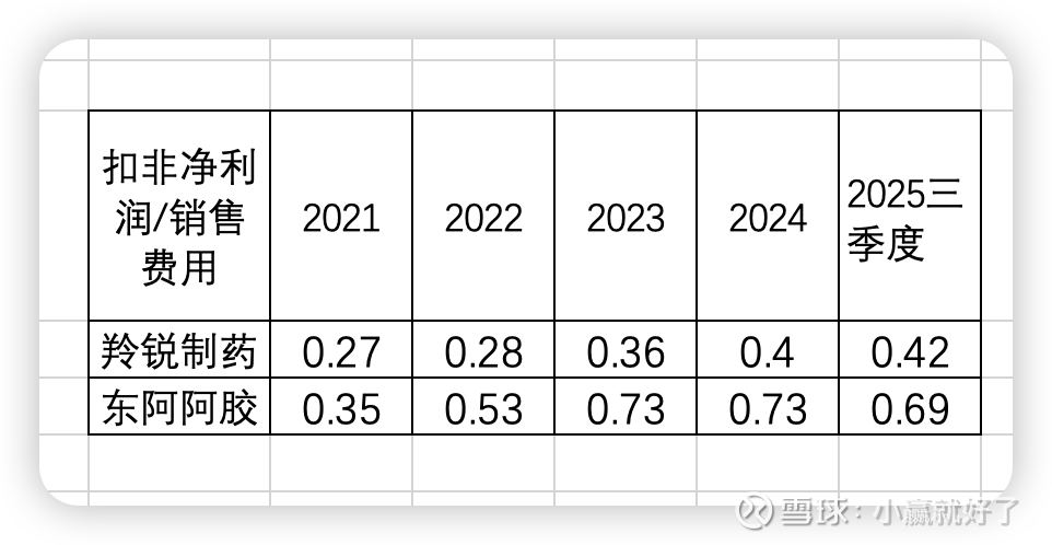首先销售费用率:羚锐的销售费用率逐年下降,经营效率逐年提升,2025年三季度回升主要是并表了银谷,增加了销售开支导致;东阿阿胶销售费用率则逐年上升,与他家从阿胶块,阿胶浆,逐步拓展桃花姬,燕窝,皇家围场等等新品相关,新品投入期,考虑到费用先行,收入后置,这点是可以理解;