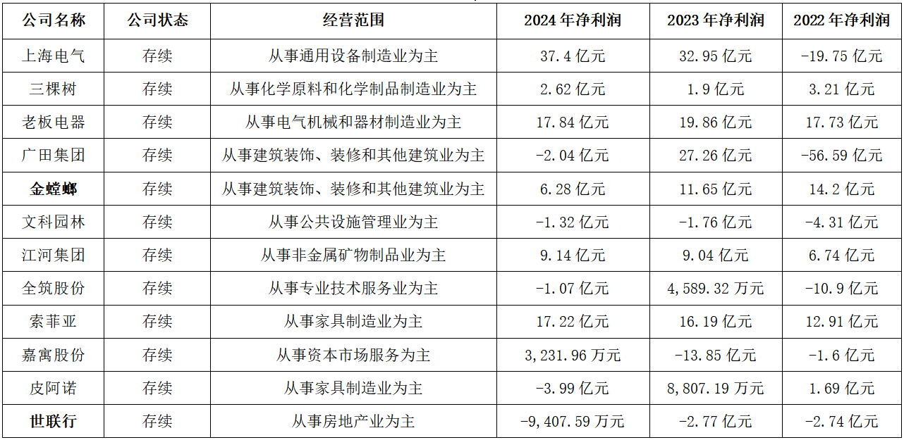 如今,据恒大暴雷已过去多年,它退市的结局也近在眼前。但那些供应商们又过得如何?是否已摆脱当年踩雷带来的影响?还是说因为恒大的退市更加雪上加霜了呢?我们整理了其中一些公司2022年至2024年的净利润情况,发现大部分公司的经营情况也不是很乐观。其中,金螳螂和世联行两家公司的净利润逐年递减。
