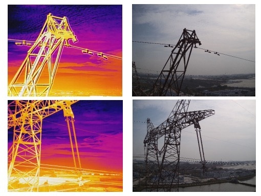 无人机搭配红外热成像进行电力巡检。图源:小域智能