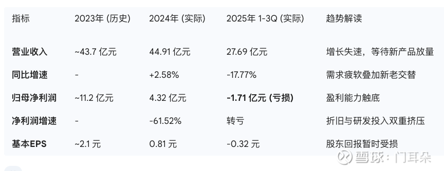 净利润:2024年:4.32亿元,同比下降61.52% 14。2025年前三季度:亏损1.71亿元 1。