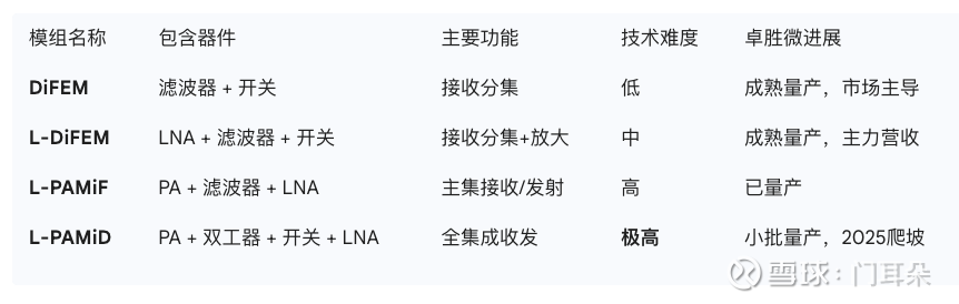 分立器件时代(4G早期): 手机厂商分别采购开关、LNA、滤波器和PA,自己在PCB板上组装。卓胜微凭借极高的性价比和快速的服务,在这一阶段通过“国产替代”拿下了开关和LNA的半壁江山。然而,这一市场的技术门槛极低,价格战惨烈,是典型的“红海”。
