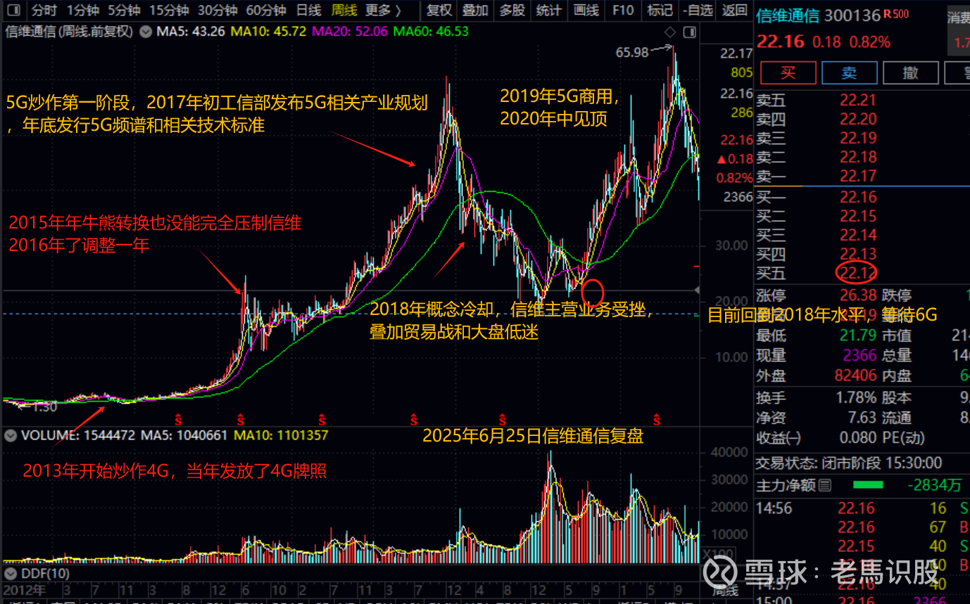 通讯设备(4G-5G)是曾经有一条比较完整的炒作历程,可谓穿越了牛熊周期。通讯设备代表股是信维通信,走势回顾如下: