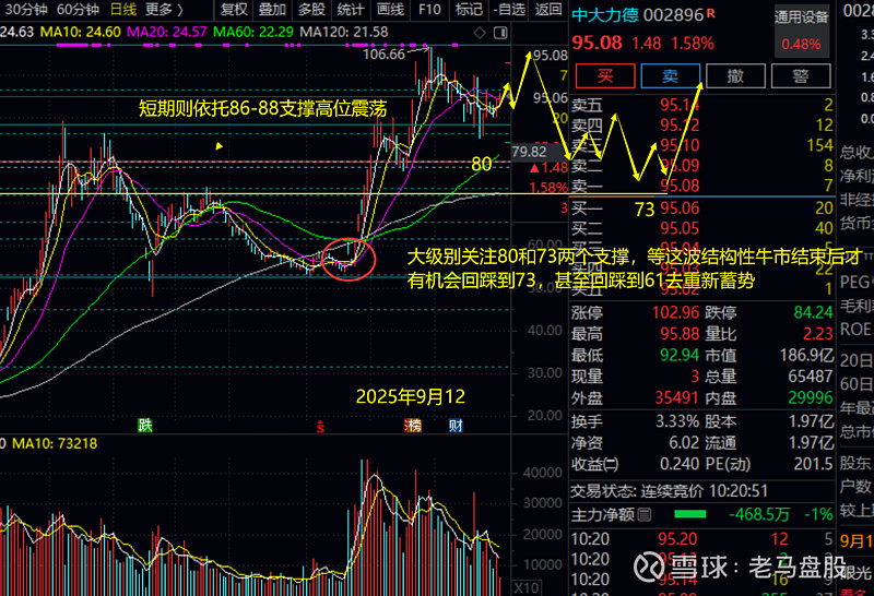 力德8月初突破88前高后如期涨了大概20个点后进入调整,目前大盘趁着进入高位震荡,本身估值严重虚高,结构性牛市结束将面临大回踩(参考4月份之后行情)