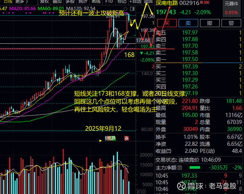 深南关注168和173支撑,预计近期还有一波破新高行情