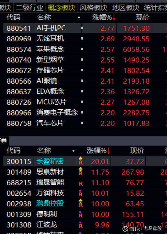 板块个股方面,消费电子板块全日强势,多只芯片概念股大涨创历史新高。受现货黄金价格新高影响,盘尾黄金股持续拉升走强,另外影视院线和旅游板块今日大跌。整体来说近期板块轮动继续,不过热门板块创新药开始分化,机器人股恢复涨势,但是也分化严重。算力,AI应用,半导体估计是本周主力。