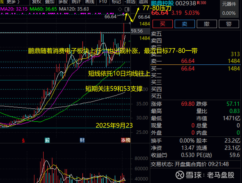 $鹏鼎控股(SZ002938)$ 随着消费电子板块上行,之前在PCB概念中滞后的鹏鼎也出现补涨,上面最近目标关注77-80.短期依托10和20日均线往上,另外算力板块再起,$英维克(SZ002837)$ 继续新高,后面也是依托10和20日线短线喝汤