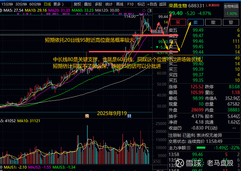 康辰药业,有苏灵这个大单品支撑,在研管线KC1036的食管癌适应症和KC1086的乳腺癌适应症,创新药概念令其股价一度翻倍。目前在49上面宽幅震荡,技术上走势比较稳,关键支撑有49和45,中短期在49上面玩下小波段震荡行情。中长线可以等待一下45下方进场机会。