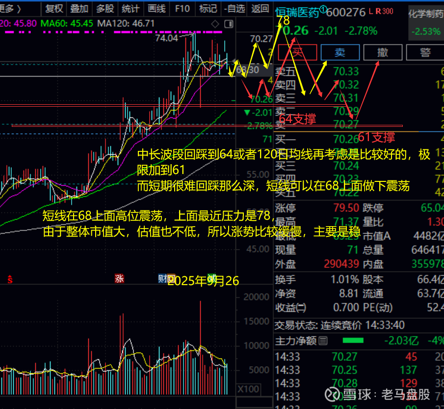 $恒瑞医药(SH600276)$ 作为创新药龙头,市值太大,平时胜在稳,适合防守,短线关注68上面震荡,大波段能再次到64下方大胆分批做