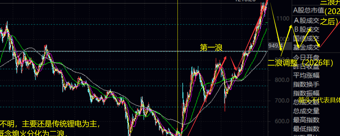 前文认为固态电池指数难以突破前高,当下处于大三浪前夕。现在看来要重新定义了,现在回头看,2025年之前固态电池其实都算是概念初期,成分股十分笼统,当下随着资本不断投入,才逐渐走向清晰。除了电解质方面还没分高下,上游设备原材料和下游电池终端基本上比较确定。所以按波浪理论走势要重新划分了,今年才算新的开始,也就是第一个启动浪,后面会再次熄火分化,直到规模化落地,开启第三浪走势,然后开启新一轮内卷模式,龙头显现,地位进一步巩固(每个波段大概在1年半-2年左右时间)