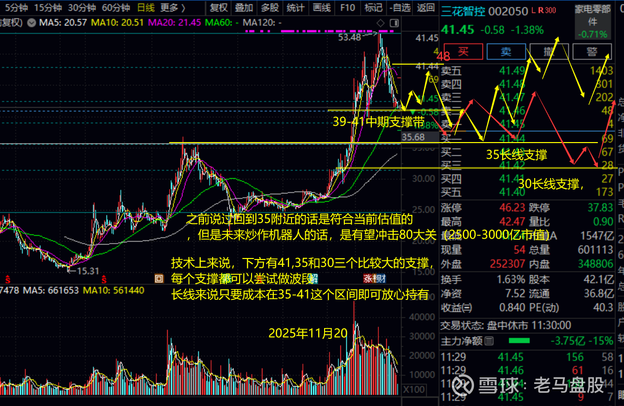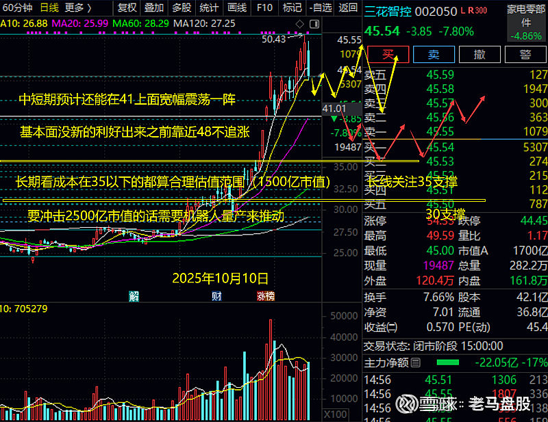 首先再看第一梯队代表三花智控,10月份时候就多次提醒上破48之后不宜追涨,长波段要耐心等35这个大支撑,中期也要等41支撑
