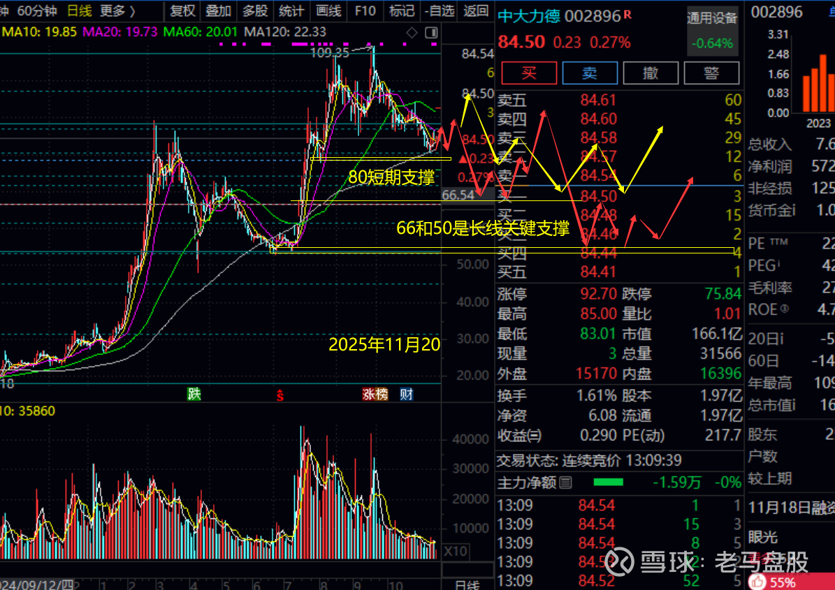 中大力德波动较大,也适合玩大波段,关注66和50大支撑