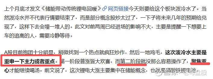 储能前几天不小心泼中了冷水,其实也没啥,文中明确说了,储能行情并没完全结束,只是第一阶段过于疯狂,很多水分过大,避免在第一阶段末端追涨,找到储能板块重心,这样第二阶段还可以继续喝汤。