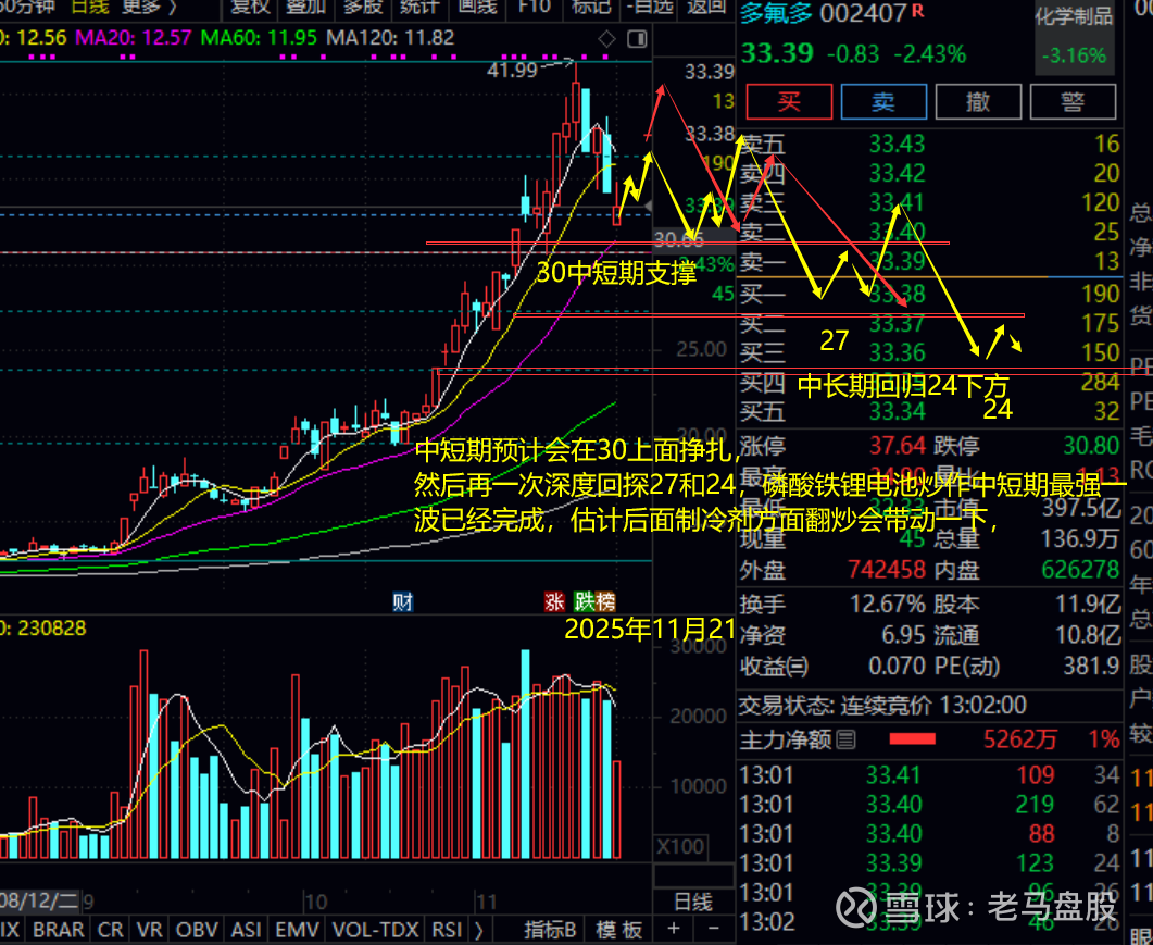 至于$多氟多(SZ002407)$ 和天际股份折半之前是不建议再参与了。前面说了多氟多35和30可以做下反弹,但是也仅仅是反弹,35反抽一下后再次下探,短期估计会在30上面挣扎一番,如果有短线高手可以试一下,后面大概率会继续回踩27甚至24支撑