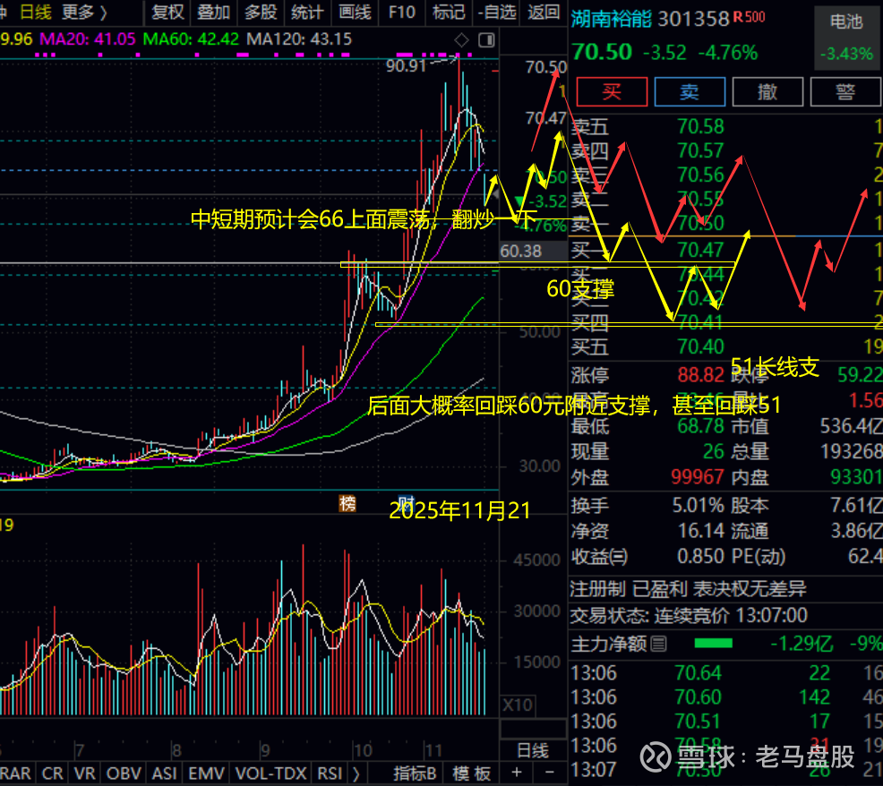 整体来说储能力度节奏符合预期,但是个别股支撑压力和预期是不一样的,例如多氟多和湖南裕,天赐材料, 按目前回踩力度看,后面翻炒想再破上周高点是有点难的了,余温还有,鱼尾行情要很好的盘感和技术,而且要很好执行力才能去抢,千万别到了尾流还死磕。对于锂矿更偏向周期股,大回踩后还可以进去,而阳光电源这个龙头估值不高也还可以恋战,其余的要慎之又慎,能吃尾流则吃,吃错就赶紧走。