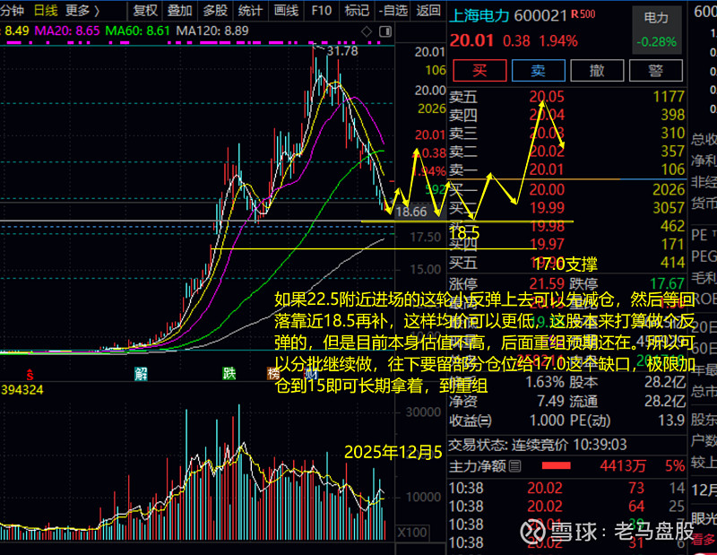 $上海电力(SH600021)$ 有止跌反弹迹象,离18.5支撑也一步之遥了,不猜最低点,分批进比较合适,今天只是反弹,没有利好的话,反弹到22上面可以减一点先,后面再横盘蓄势一阵的话可以慢慢加,均价尽量拉到靠近18.5。整体策略稍微改变一下,再往下预留一一点仓位给17.0这个缺口。极限考虑到15.