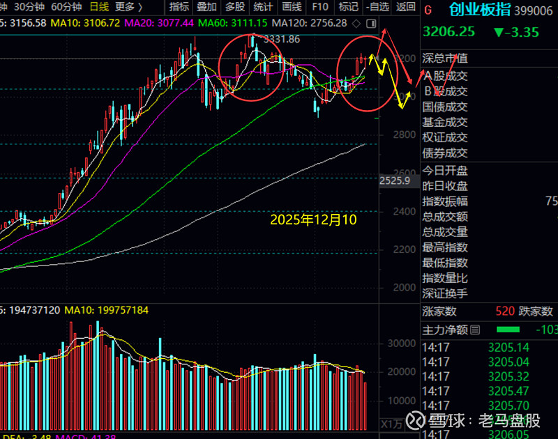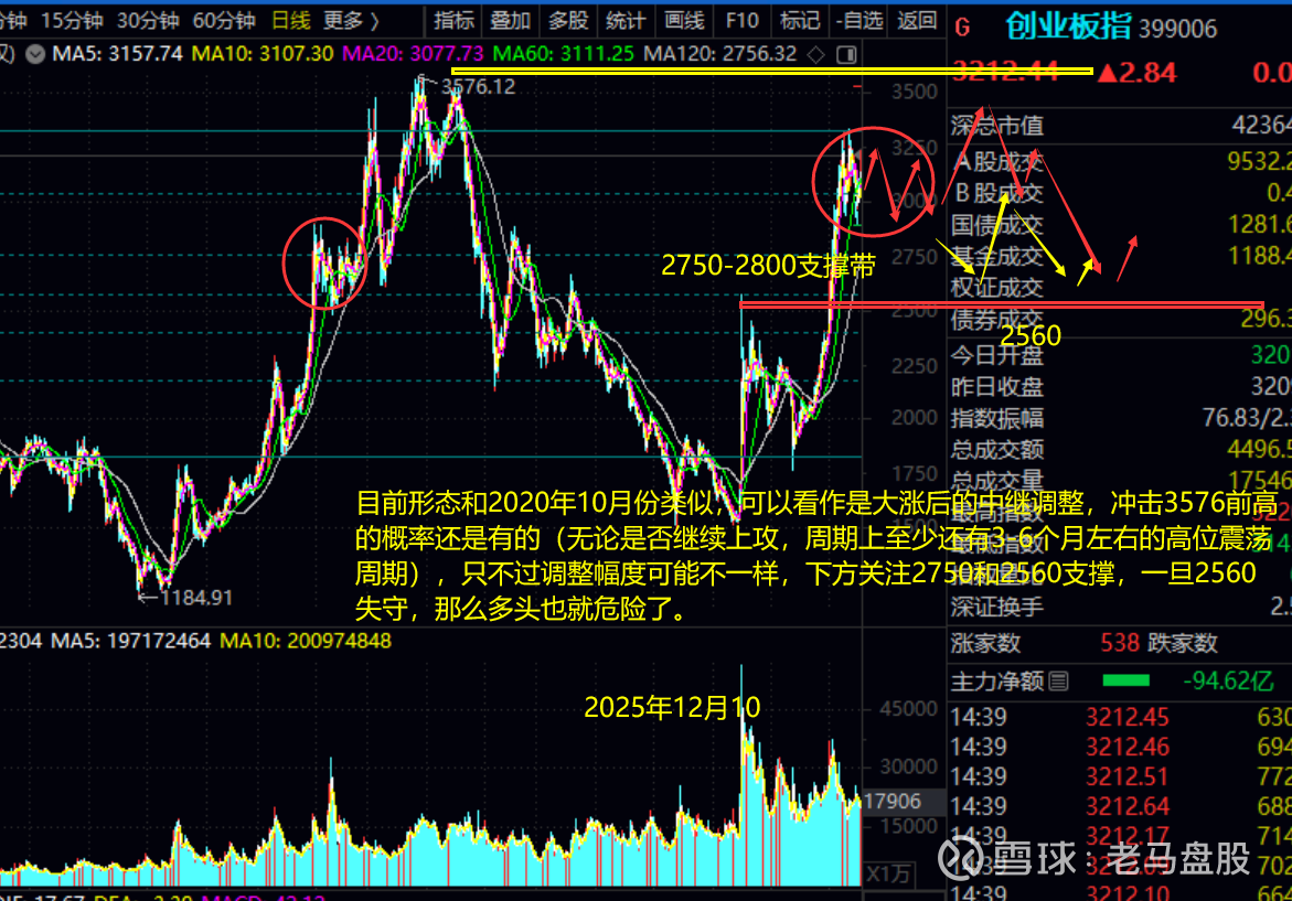 但是$创业板指(SZ399006)$ 大的方向思路其实没啥改变,在维稳基础上,题材轮转,尤其是前沿科技(算力,机器人,固态电池)的翻炒会令创业板指在3000附近宽幅震荡,形态上可以参考2010年10月份,如果明年初政策再推波助澜一下,冲击3576前高也是有可能的,上攻不成也可能形成3-6个月的高位震荡,慢慢消耗多头动力之后才消退。