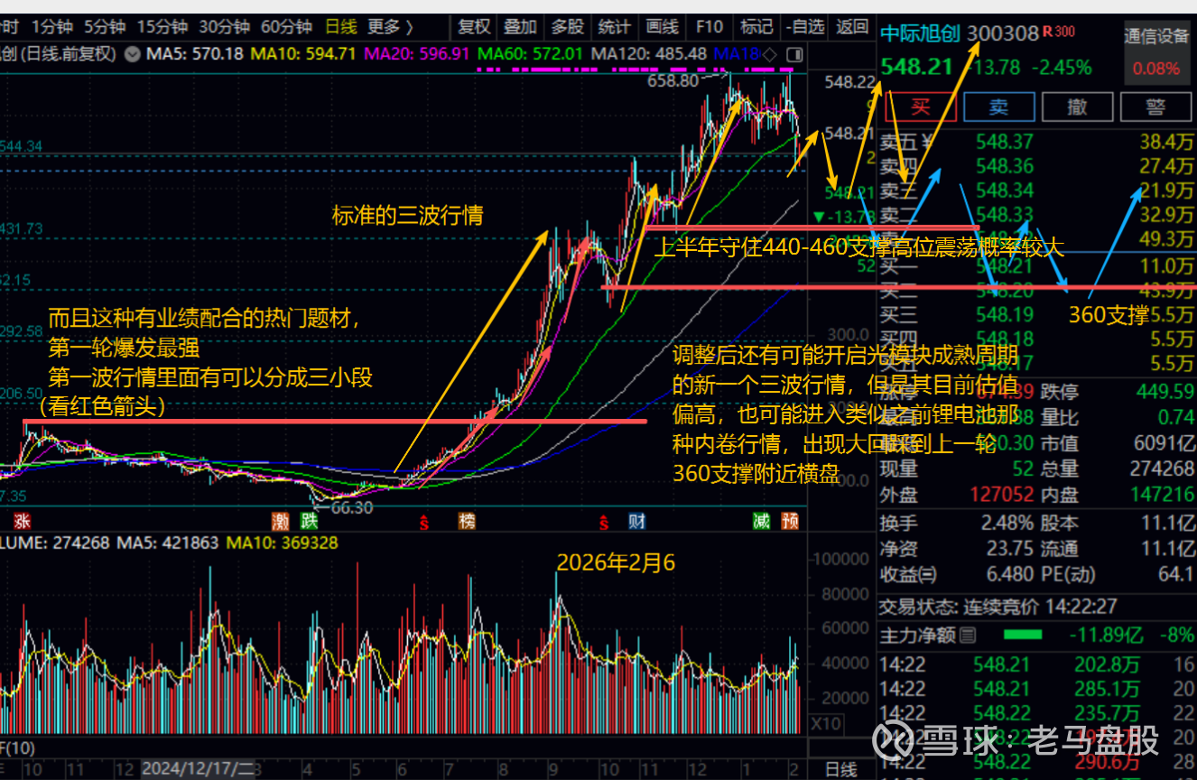 先看韧性最强的案例,先拿算力这个2025年比较有代表性的来看,尤其是$中际旭创(SZ300308)$ .,这个有标准的三波行情,而且行情开启后先判断光模块的强势周期。中际旭创刚开始启动时候也是有误判,当时对算力基建规模没有什么概念,只是随着股价不断上行后逐渐提高压力位,直到2025年8月份初第一个小阶段完成后,才改成看时间或者产业周期,不去猜个股的顶部,之后小波段策略是期间回踩超过15个点后不断进去喝汤。对于大波段策略是等30个点回踩参与。