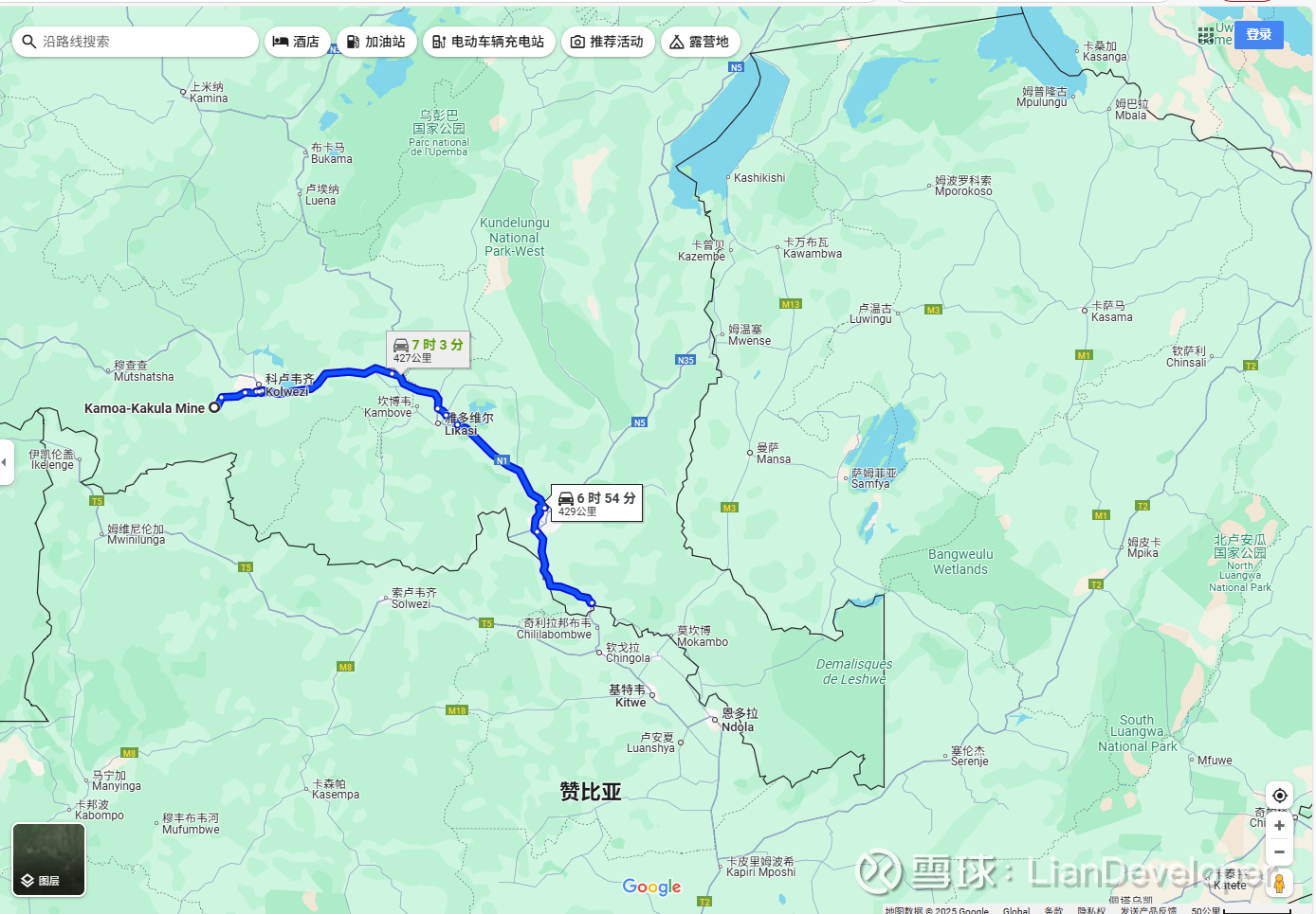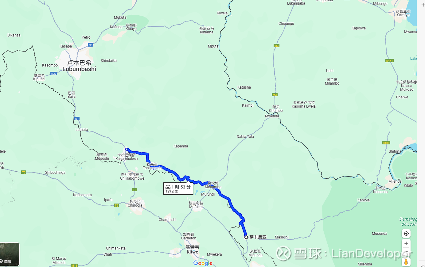 嘉友在非洲的资产布局核心是围绕刚果金-赞比亚接壤的铜矿带。以紫金的卡莫阿铜矿带为例,如果要出海到中国,则需要先走这个路线到卡松: