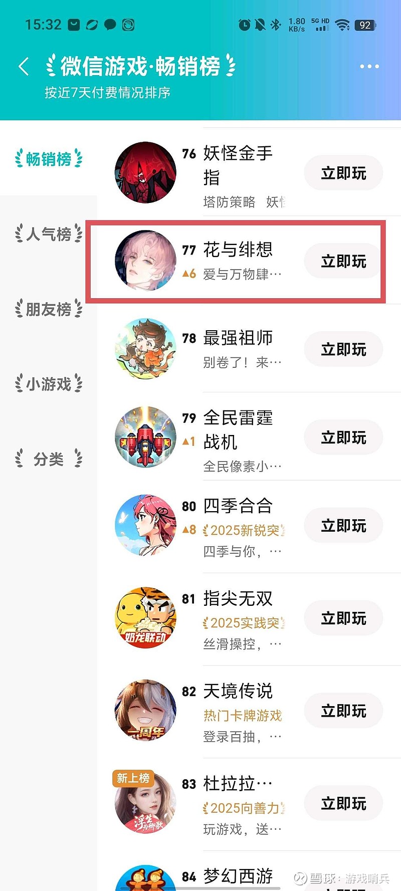微信游戏畅销榜77名,对于友谊这种小市值公司来讲这游戏非常成功了