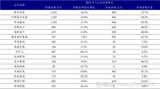2025 上半年,16 家重点房企合计拿地金额3999 亿元,相当于这些房企2024 年全年的72%,上半年拿地力度回升至41%。