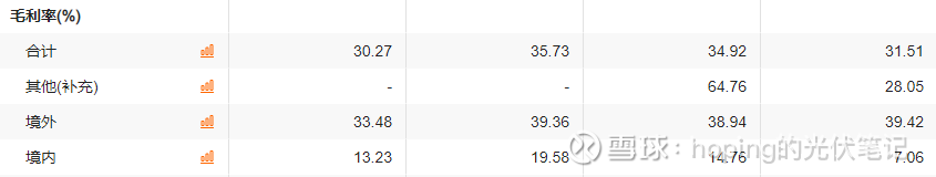 通过上图可知,目前公司国内业务毛利率整体持稳,但境外毛利率在储能电池毛利率大增的背景下,居然仍保持持续下跌态势。