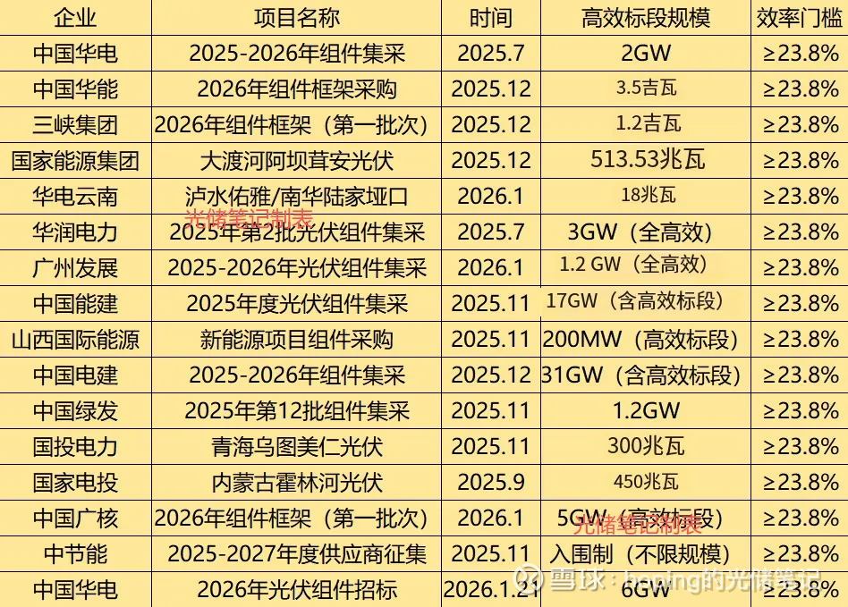 2026年1月21日,华电招标23.8%组件采购6GW!占比高达75%