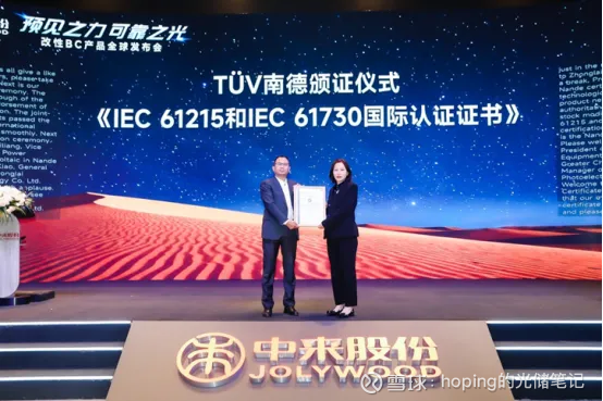 答案当然是肯定的。改性BC组件的安全和可靠性获得了TÜV南德授予的IEC 61215与IEC 61730双国际认证证书。据介绍,两项核心认证的斩获,标志着中来改性BC产品的安全性、可靠性已全面达到国际顶尖标准,不仅获得权威机构的官方背书,更为产品后续进军全球市场筑牢了坚实根基。