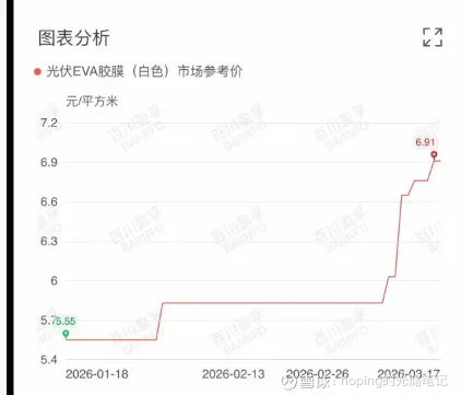 光伏胶膜这次终于坐上了火箭,成本上行叠加组件排产修复(331),推动胶膜价格上涨。有券商预计涨幅在1元/平以上。