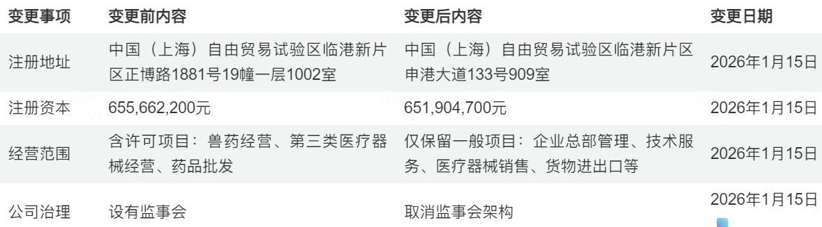 本次注册地变更与公司治理改革同步推进。2026年1月15日工商登记显示,公司已正式取消监事会架构,并完成注册资本由655,662,200元调减至651,904,700元(因3,757,500股限制性股票回购注销)。这一系列变更均基于2025年10月董事会与股东大会决议,表明公司正通过精简治理层级、降低资本冗余,提升决策效率与资本配置灵活性,为后续并购整合与融资活动铺路。