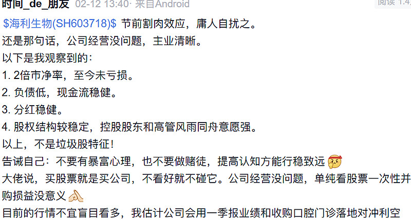 $海利生物(SH603718)$ 再谈海利持股逻辑