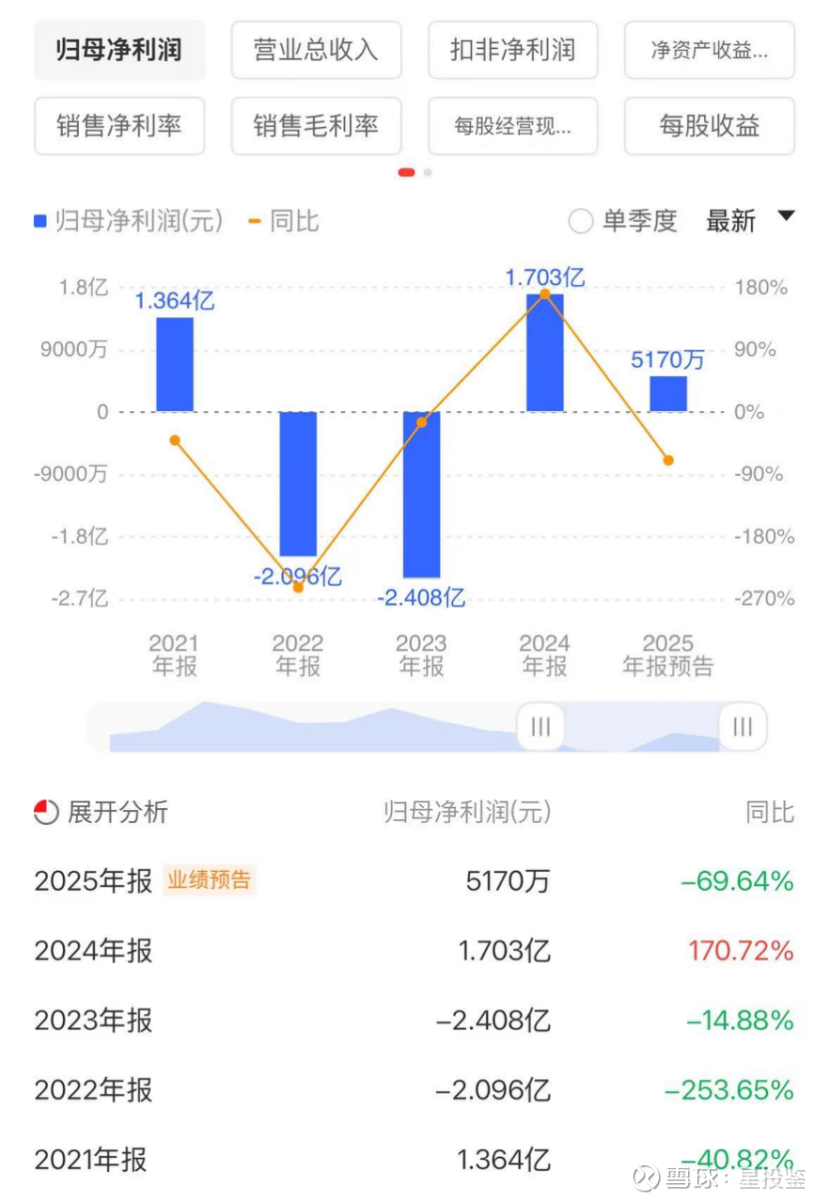 2025年全年预测:预计2025年实现归属于上市公司股东的净利润为5,170.00万元,与上年同期(法定披露数据)相比,将减少11,861.61万元,同比减少69.64%。