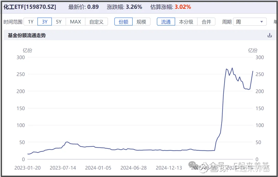 去年三季度化工行情刚启动那会儿,该产品规模两个月翻了5倍,随后,部分资金开始获利了解流出,但并未影响到板块走势。这两周,或受益于板块表现突出及市场共识在增强,可以看到,资金再度在大举回流。