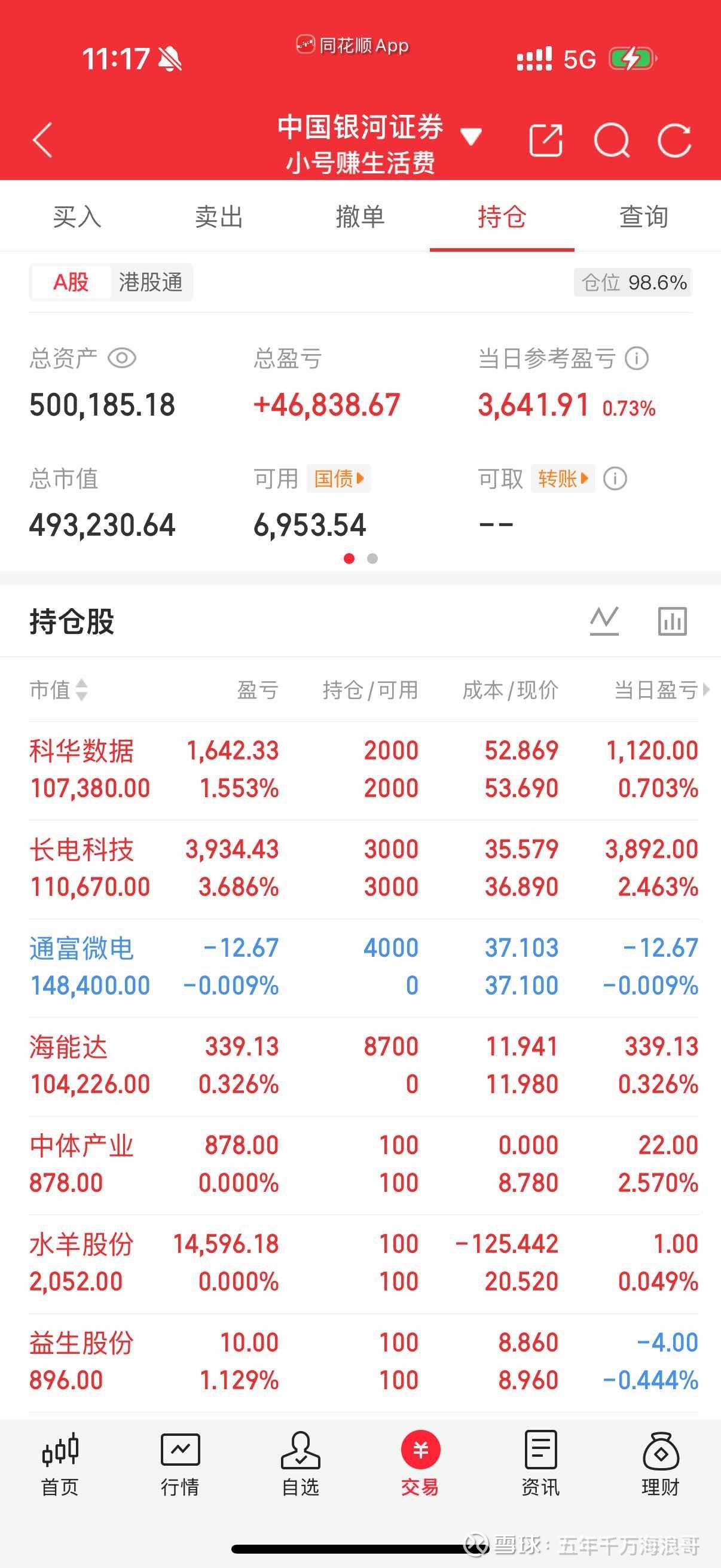 小账户:止盈厦门国贸(走弱了),建仓通富微电和海能达